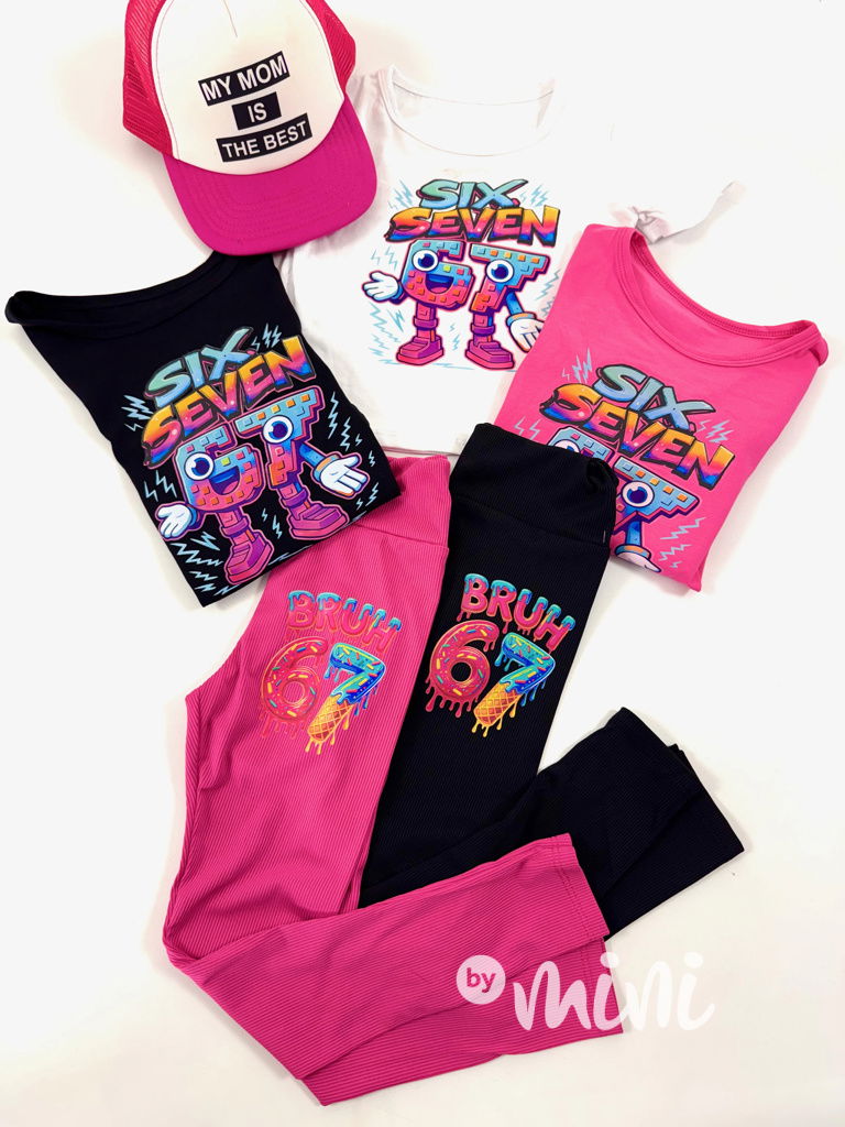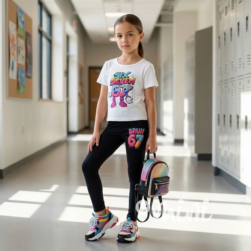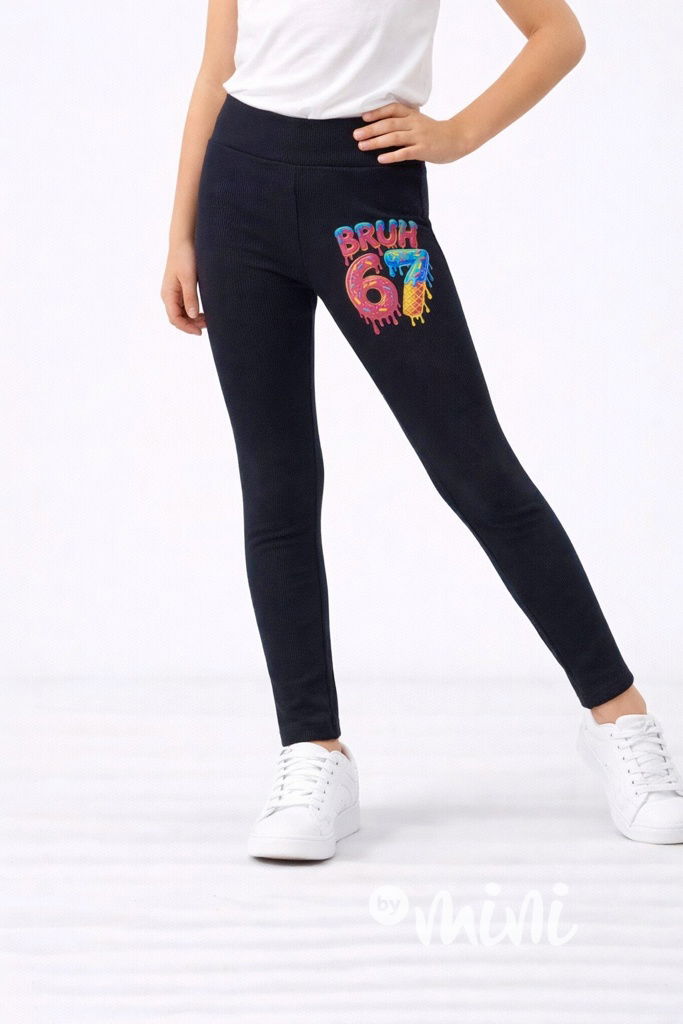 Stretch žebrované legíny, motiv 67 - Six Seven.