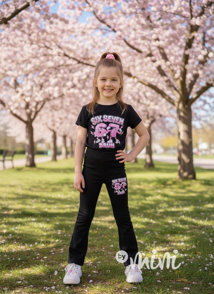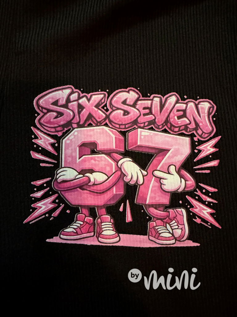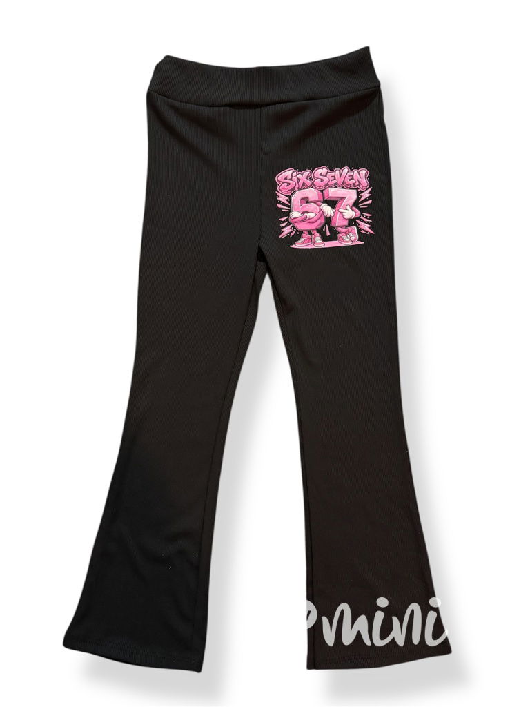 Stretch žebrované zvonáče, motiv 67 - Six Seven.