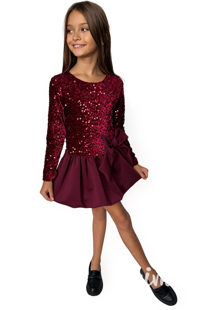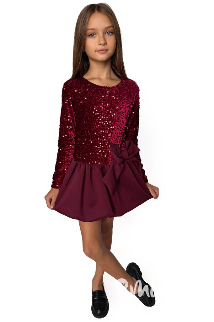 Krásné slavnostní soft velur šaty poseté flitry, balonová sukýnka s velkou mašlí.