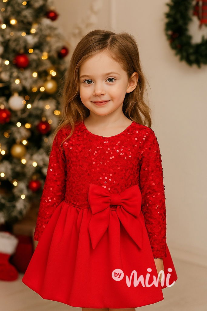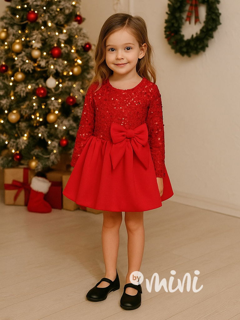 Krásné slavnostní soft velur šaty poseté flitry, balonová sukýnka s velkou mašlí.