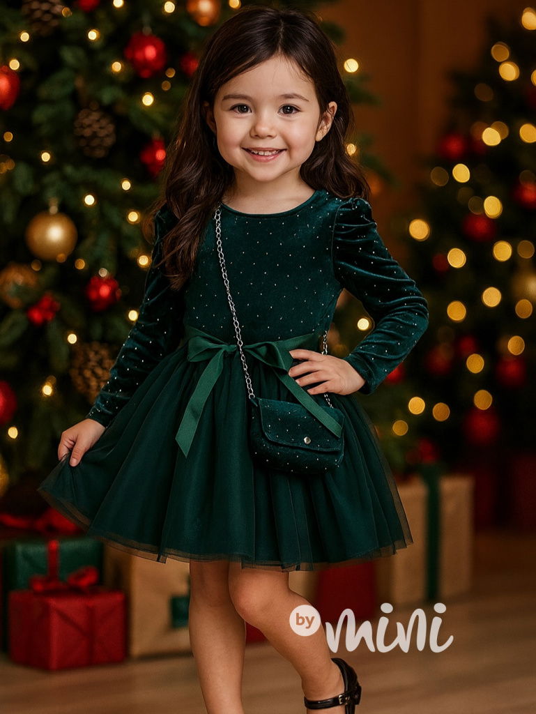 Krásné slavnostní soft velur šaty s tylovou sukýnkou + kabelka do kompletu.