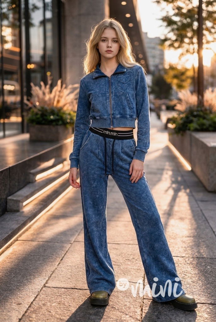 Trendy komplet: široké volné tepláky + mikina s motivem.