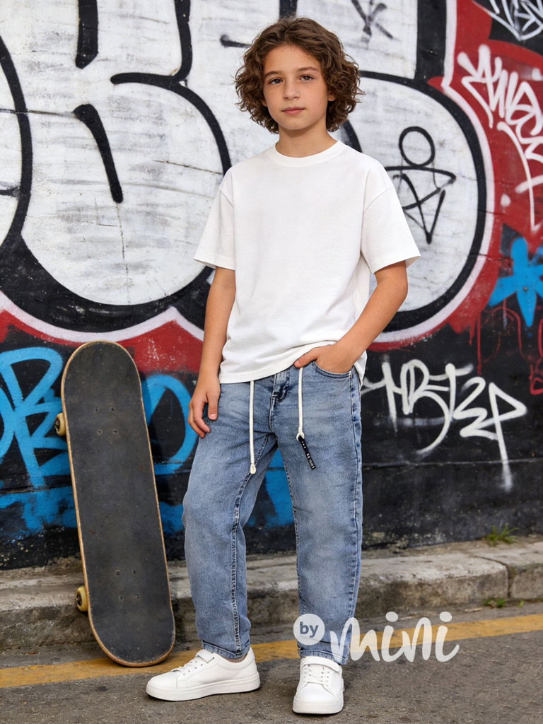 Stylové soft denim džíny, širší střih, pas na stretch gumu.