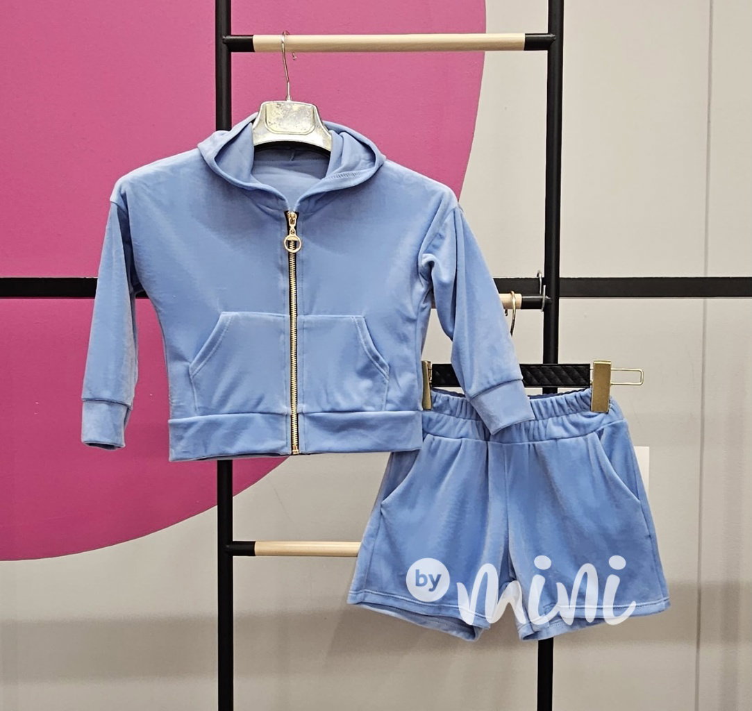 Soft velur mikina + šortky baby blue