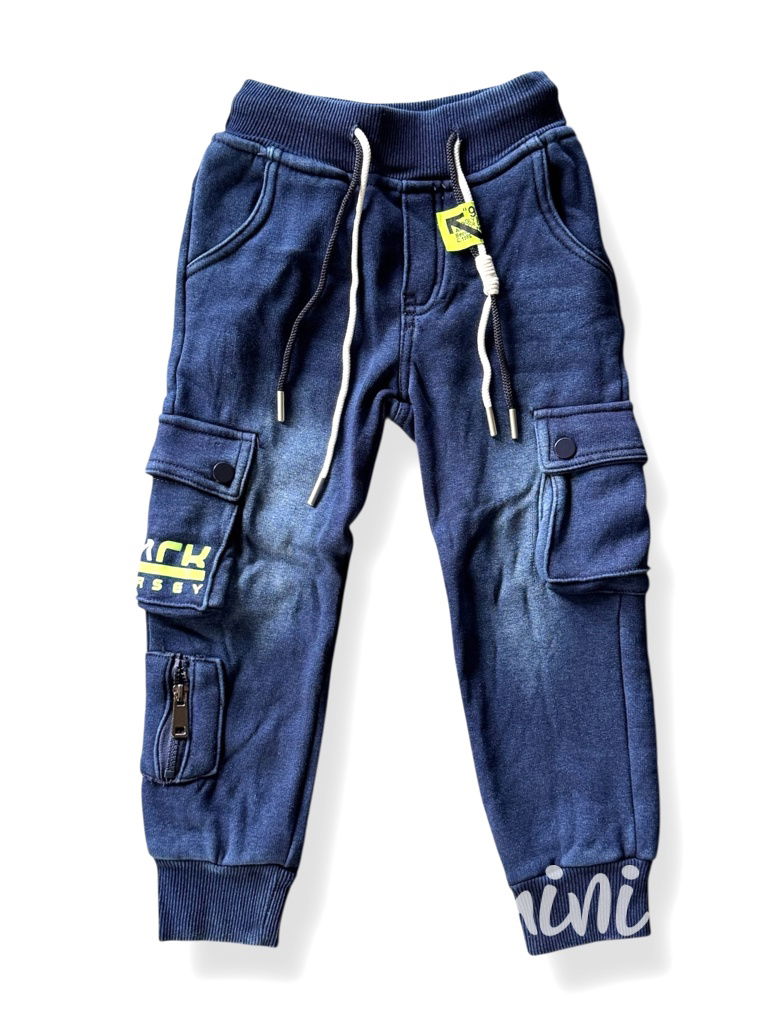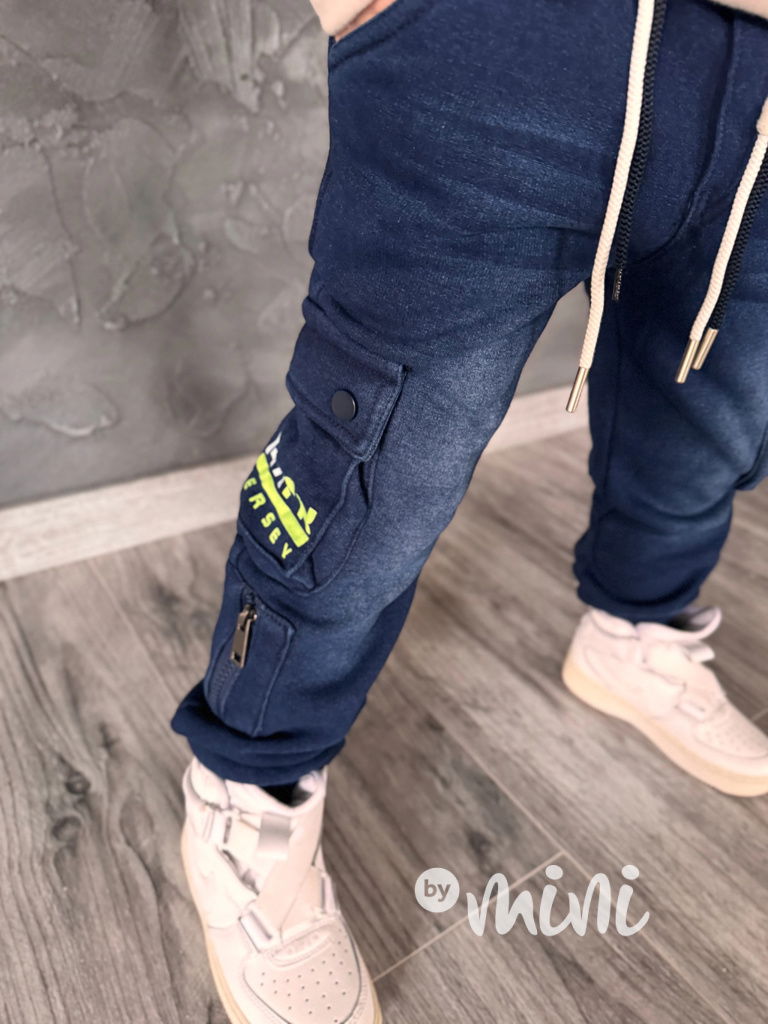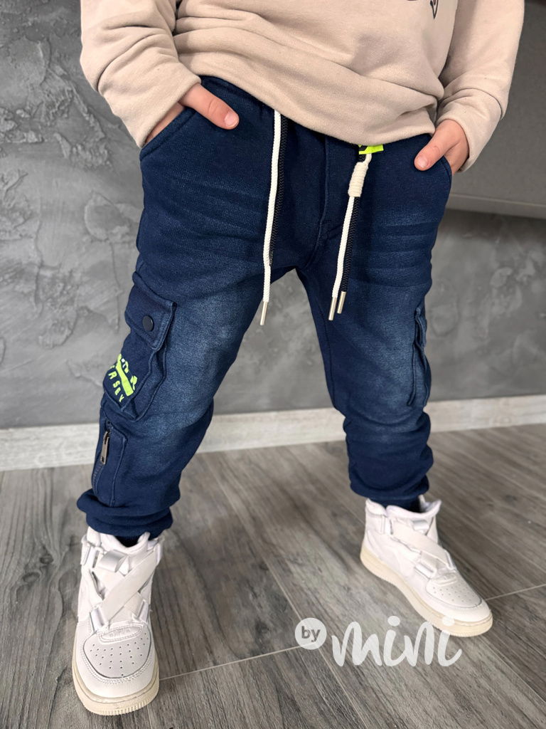 Bavlněné soft denim kapsáče, deisgnové detaily, pas na stretch gumu, kapsy po stranách.