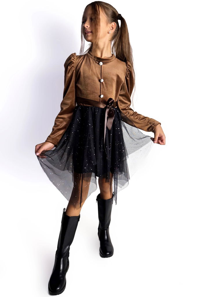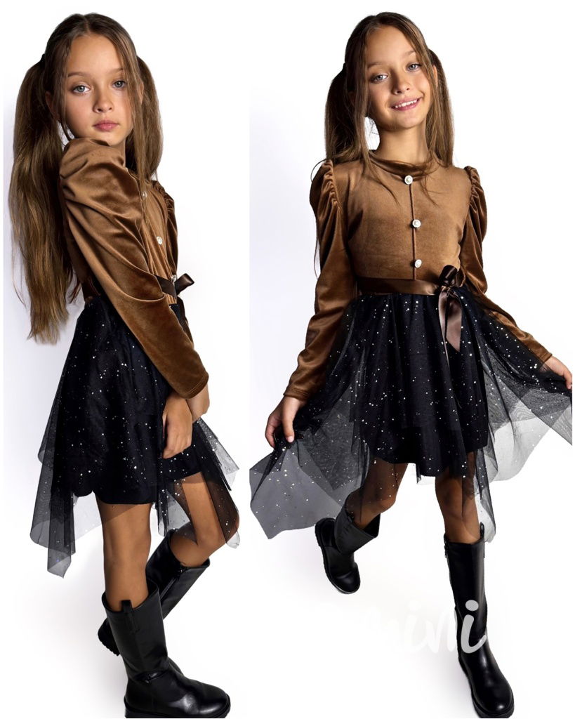 Krásné slavnostní soft velur šaty s tylovou sukní.
