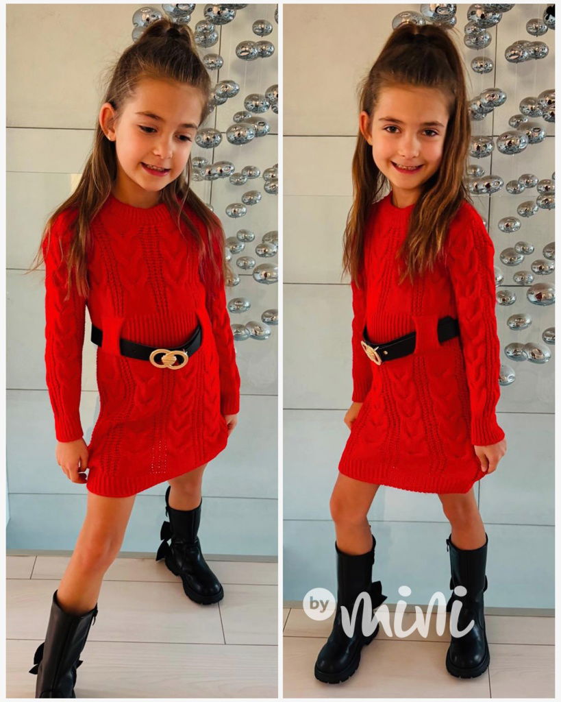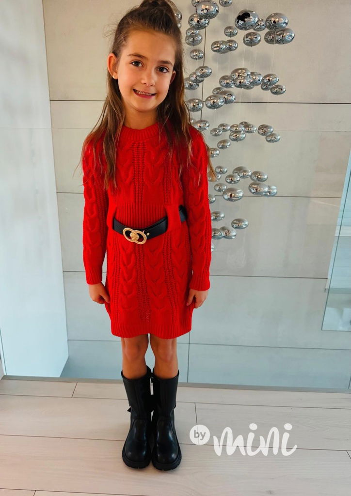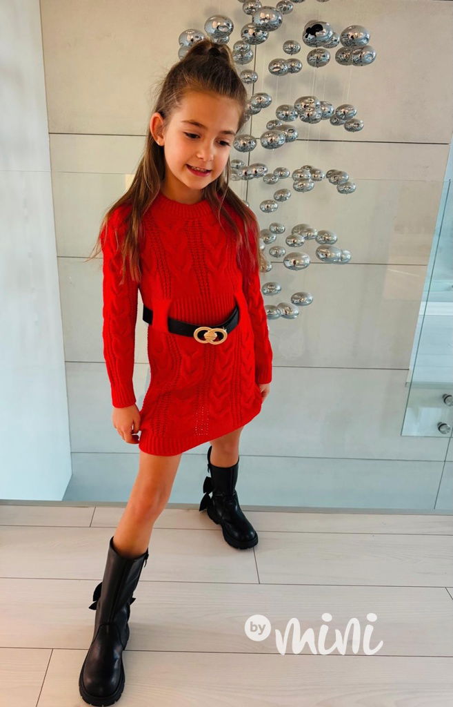 Svetrové šaty s páskem červené