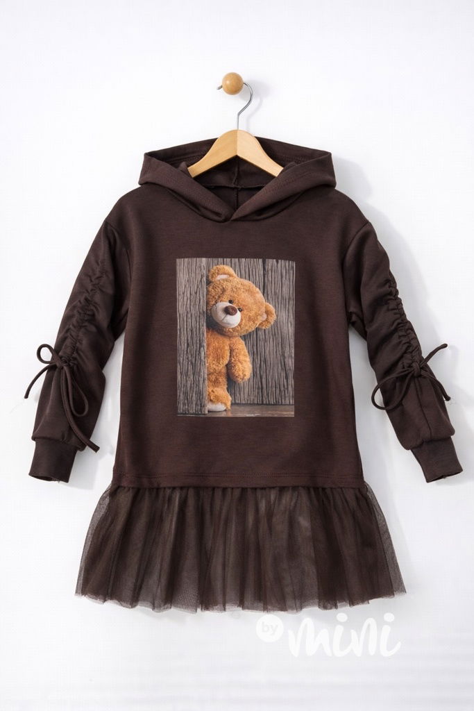 Teddy mikinová hoodie tunika s tylem hnědá