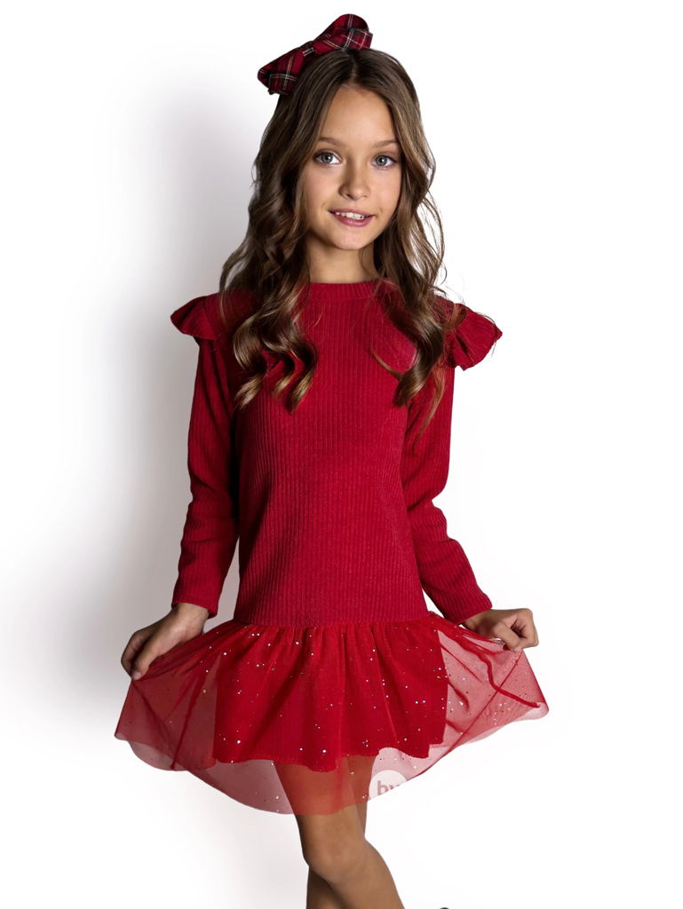 Teplé červené šaty s tylem