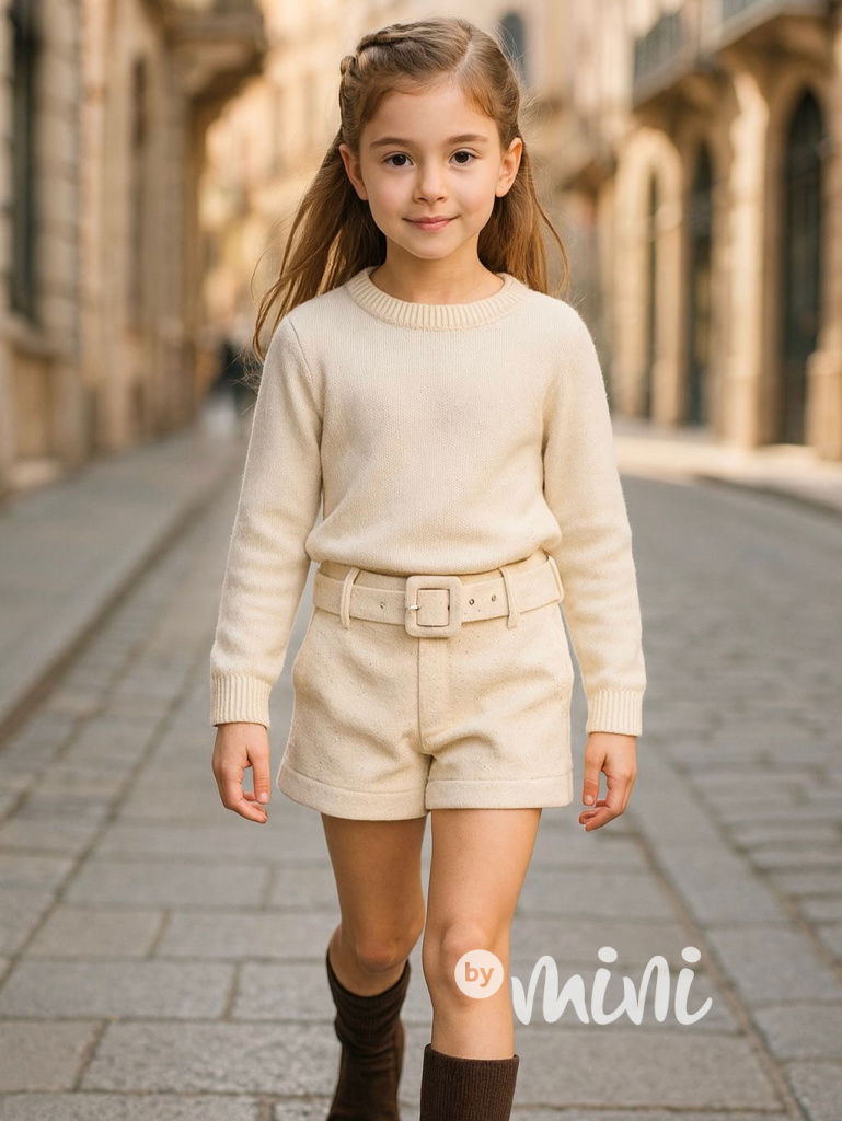 Teplé flauš kraťasy s kamínky a páskem béžové