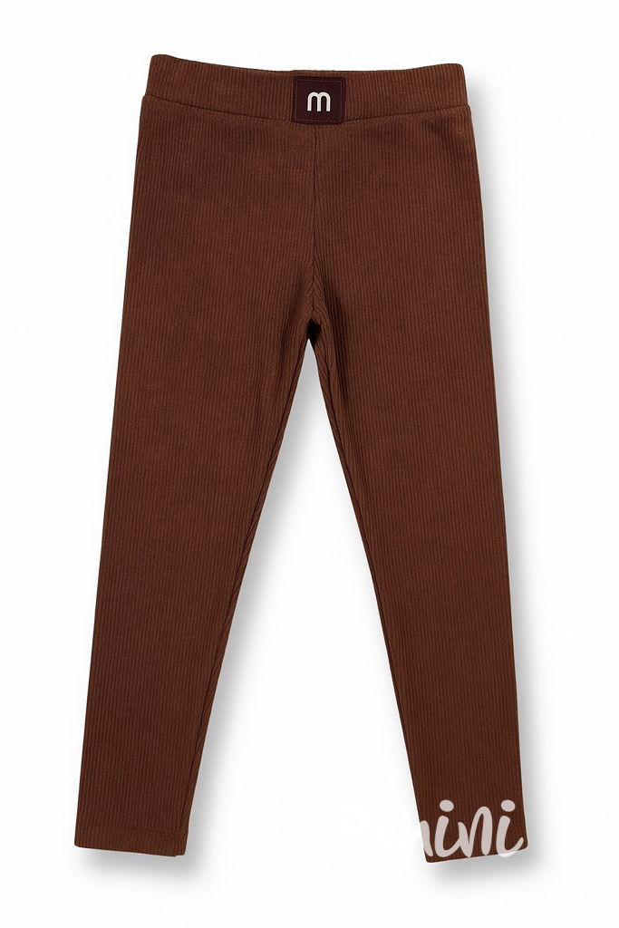Příjemné teplé legíny v žebrovaném vzoru, pas na stretch gumu, vpředu aplikace.