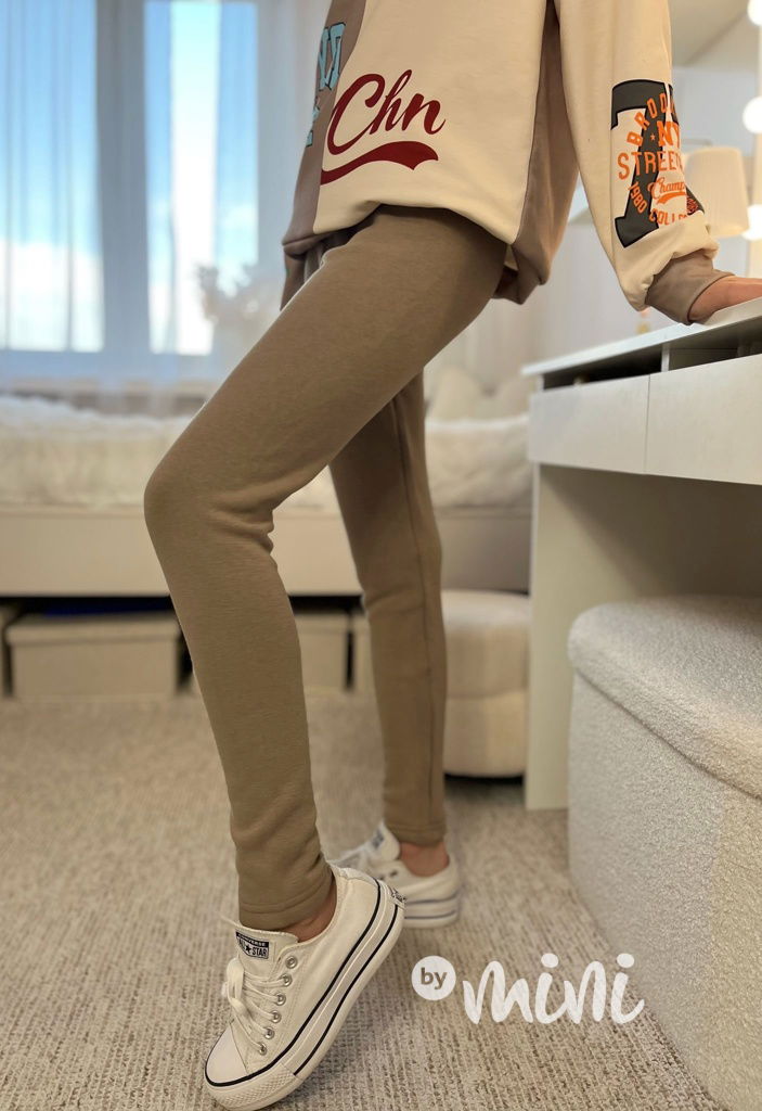 Bavlněné stretch legíny, pas na širokou gumu, ozdobná šňůrka.