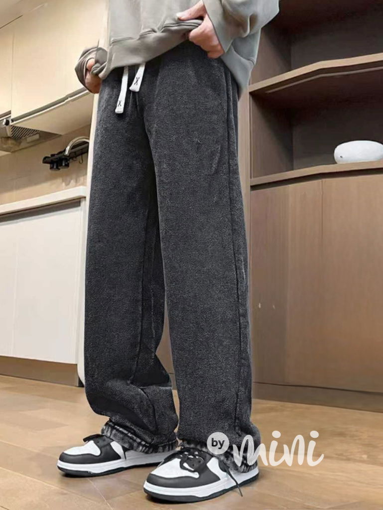 Bavlněné soft denim tepláky, maxi volný střih - pohodlné, pas na stretch gumu, kapsy po stranách.