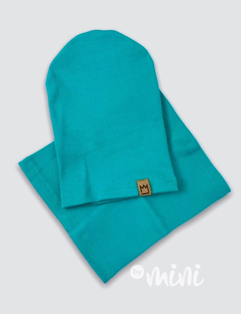 Tmavý tyrkys žebrovaná houmles čepka s nákrčníkem