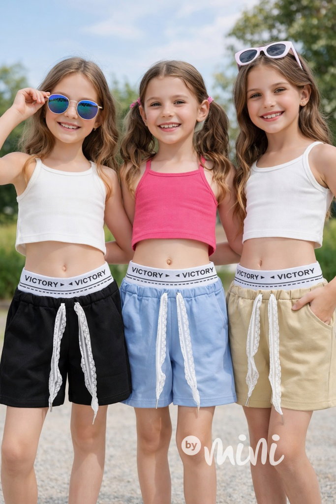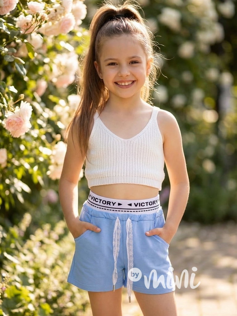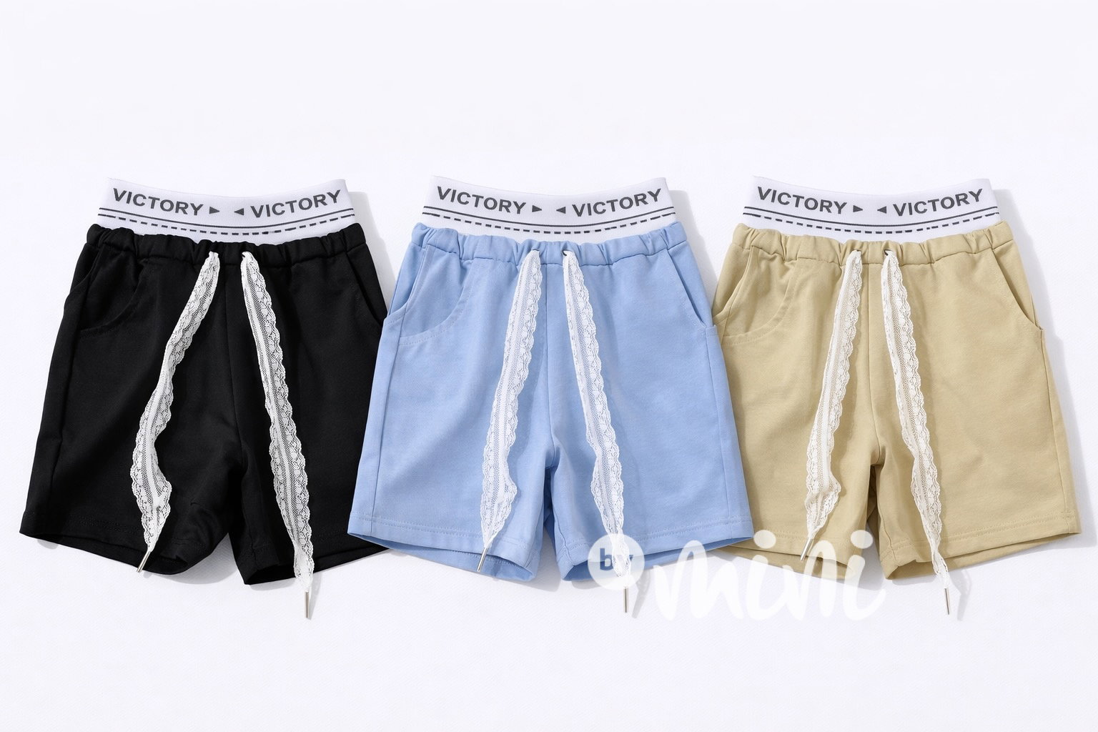 Stylové stretch bavlněné kvalitní šortky, pas na stretch gumu, kapsy po stranách, krajková šňůrka (můžete dát pryč).