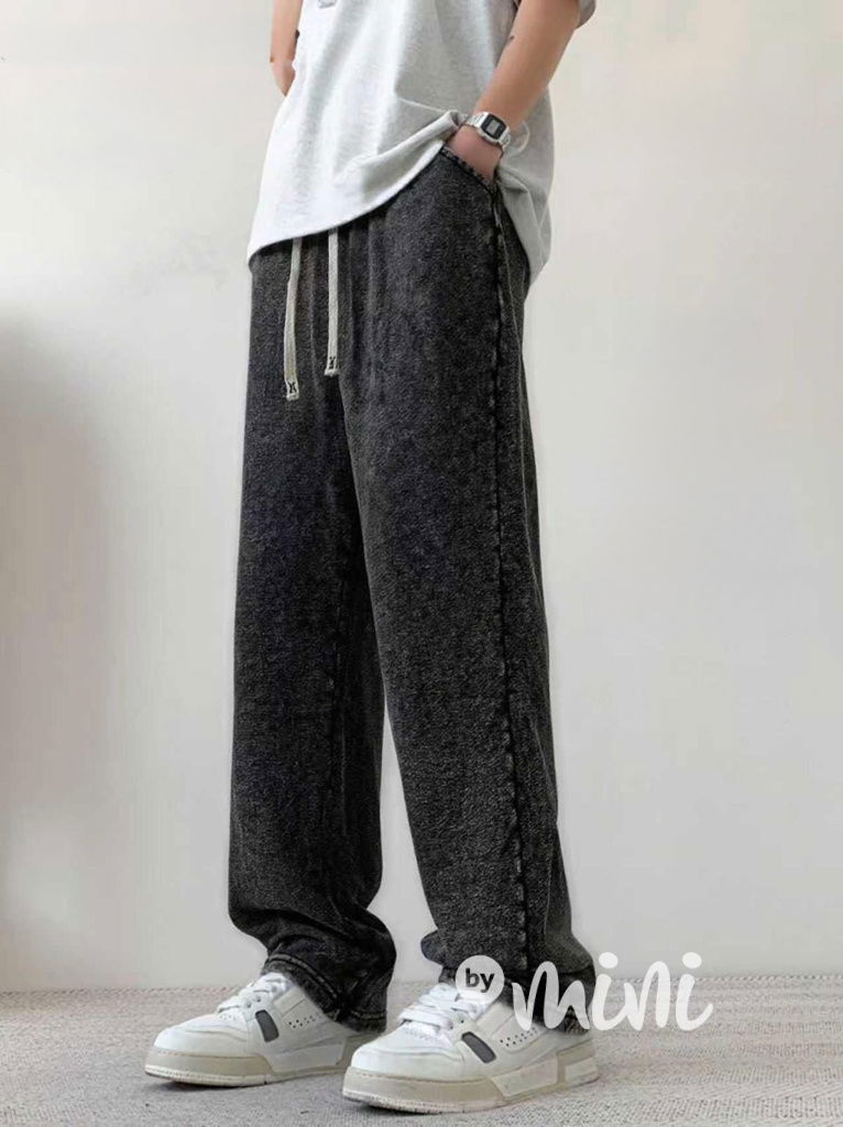 Bavlněné soft denim tepláky, maxi volný střih - pohodlné, pas na stretch gumu, kapsy po stranách.