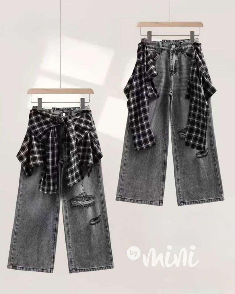 Trendy volné lounge džíny z nové kolekce 2026, potrhaný efekt.