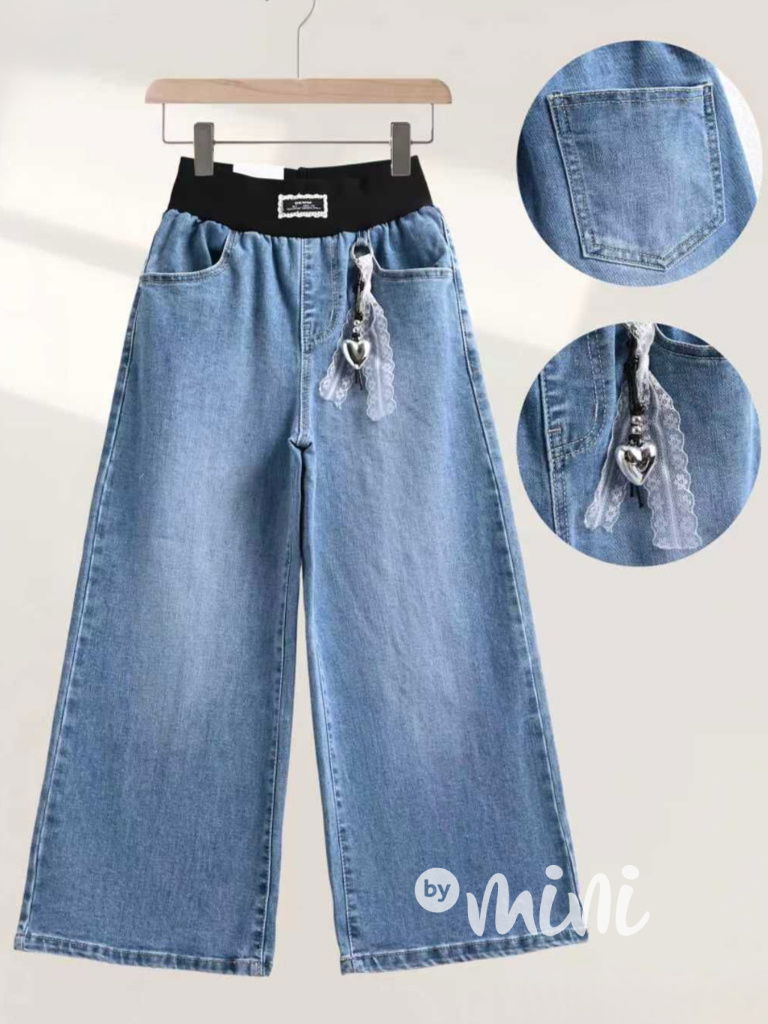 Trendy volné lounge džíny z nové kolekce 2026. V pase na gumu, odnímatelný přívěšek.