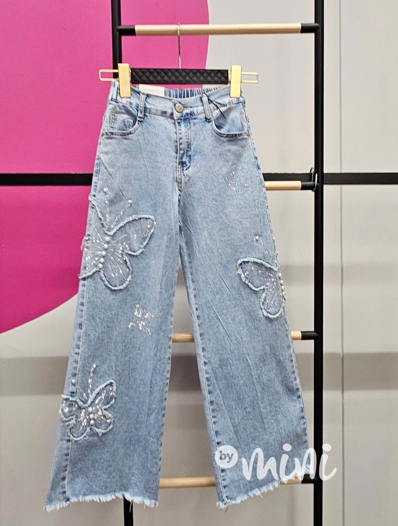 Volné široké denim rifle BUTTERFLY