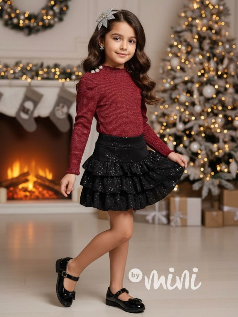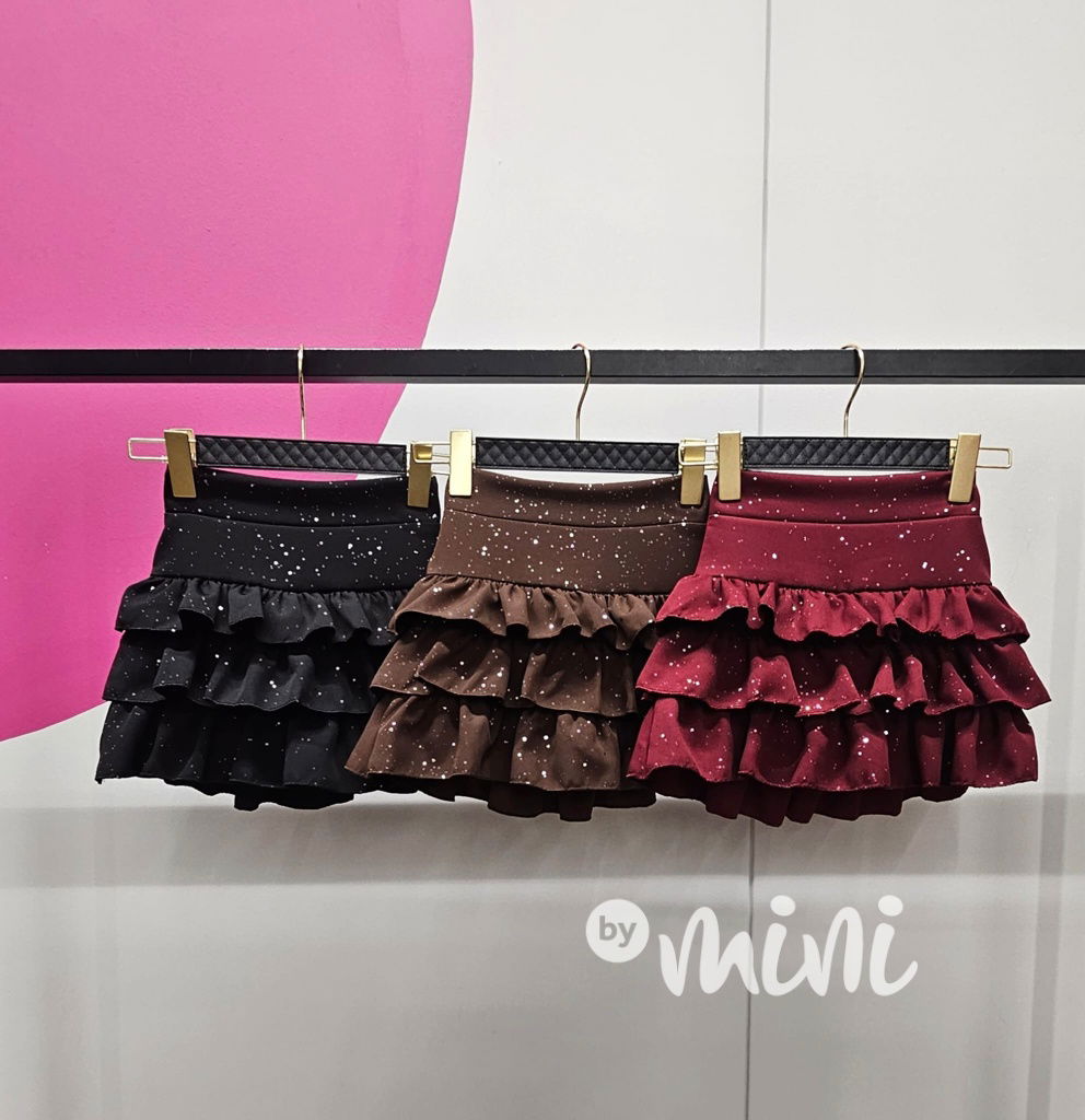 Vrstvená sukýnka, v pase na gumu, stříbrné zdobení - drží na látce, neloupe se.