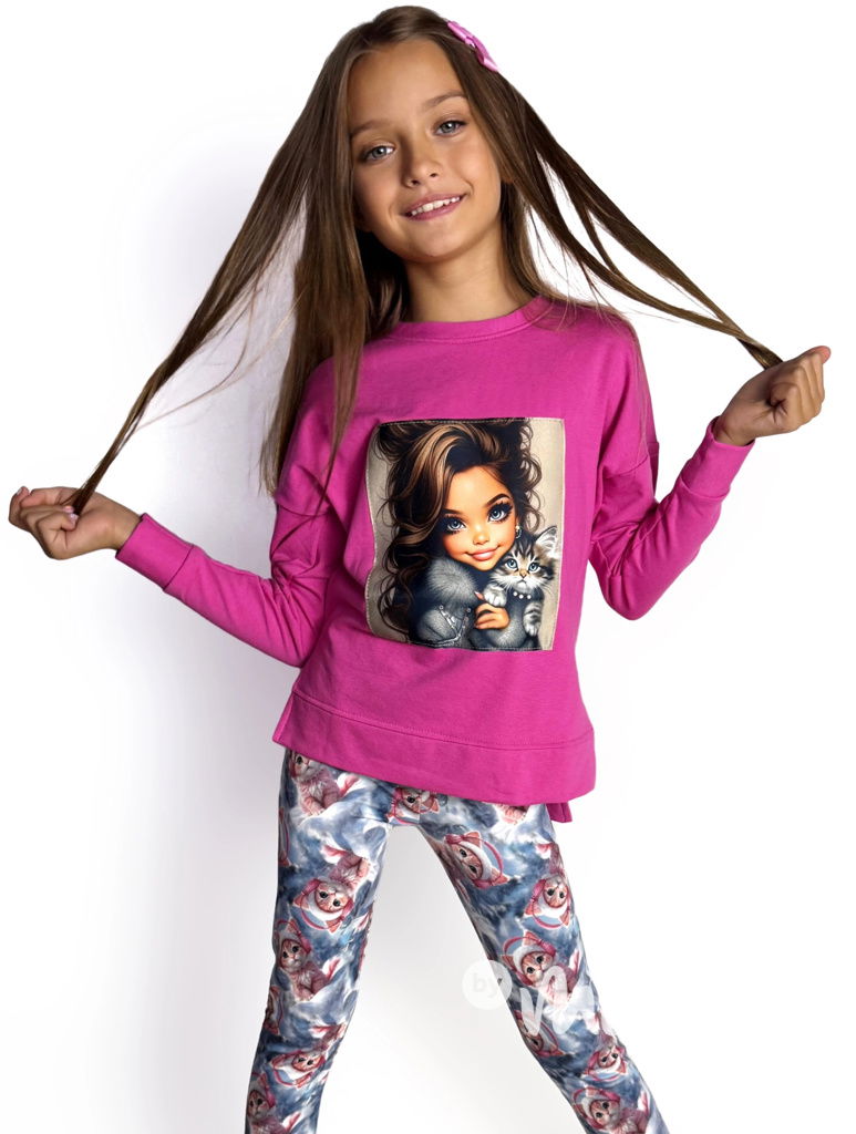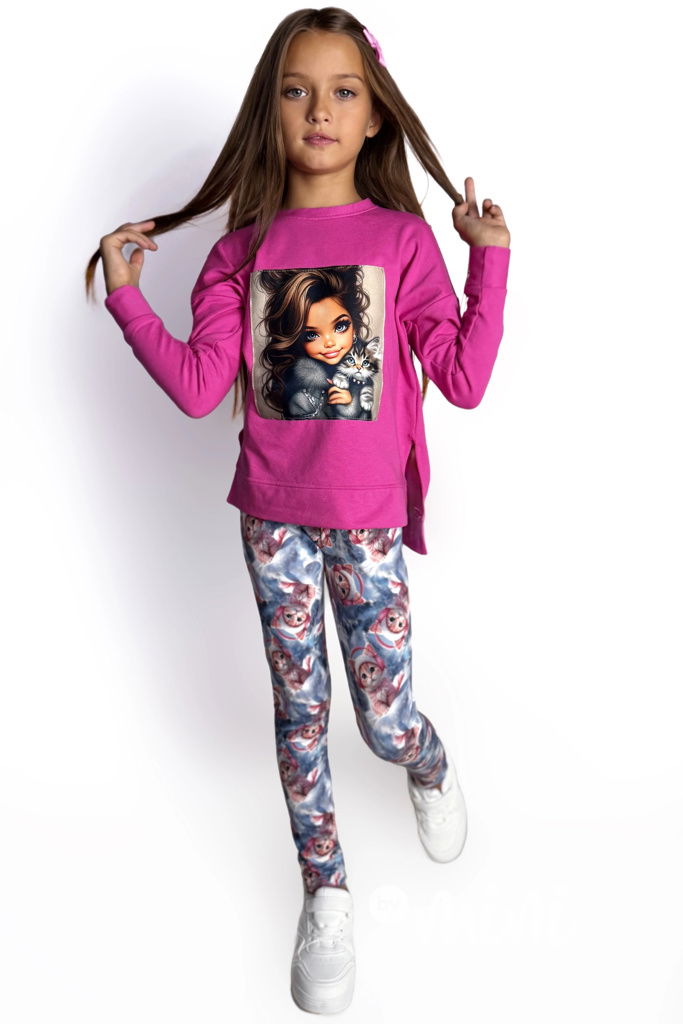 Premium bavlněná mikinová tunika s motivem vpředu, prodloužená délka, po stranách rozparky - ideální na legínky.