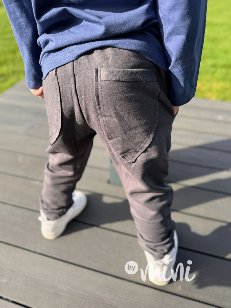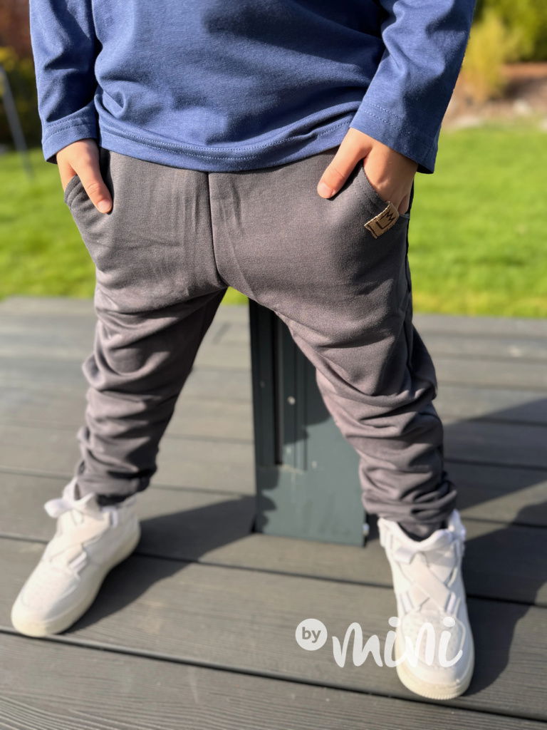 Stylové tepláky s prošitím kolem kolen, kapsy po stranách, korunkové logo.