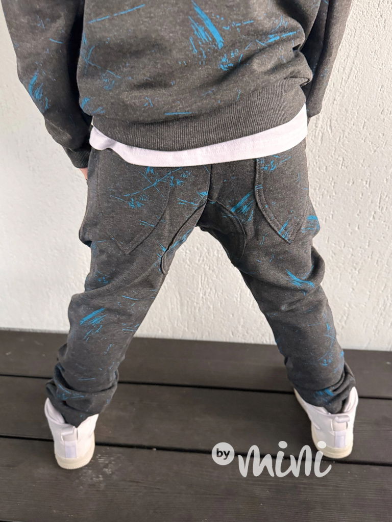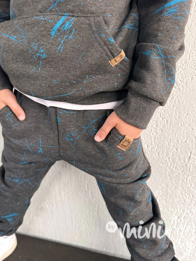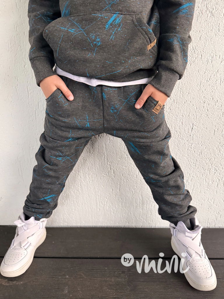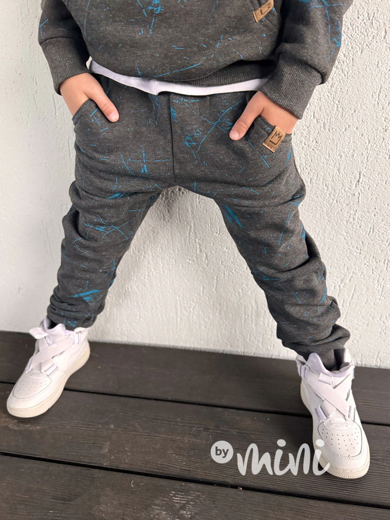 Zateplené šedé tepláky blue splash