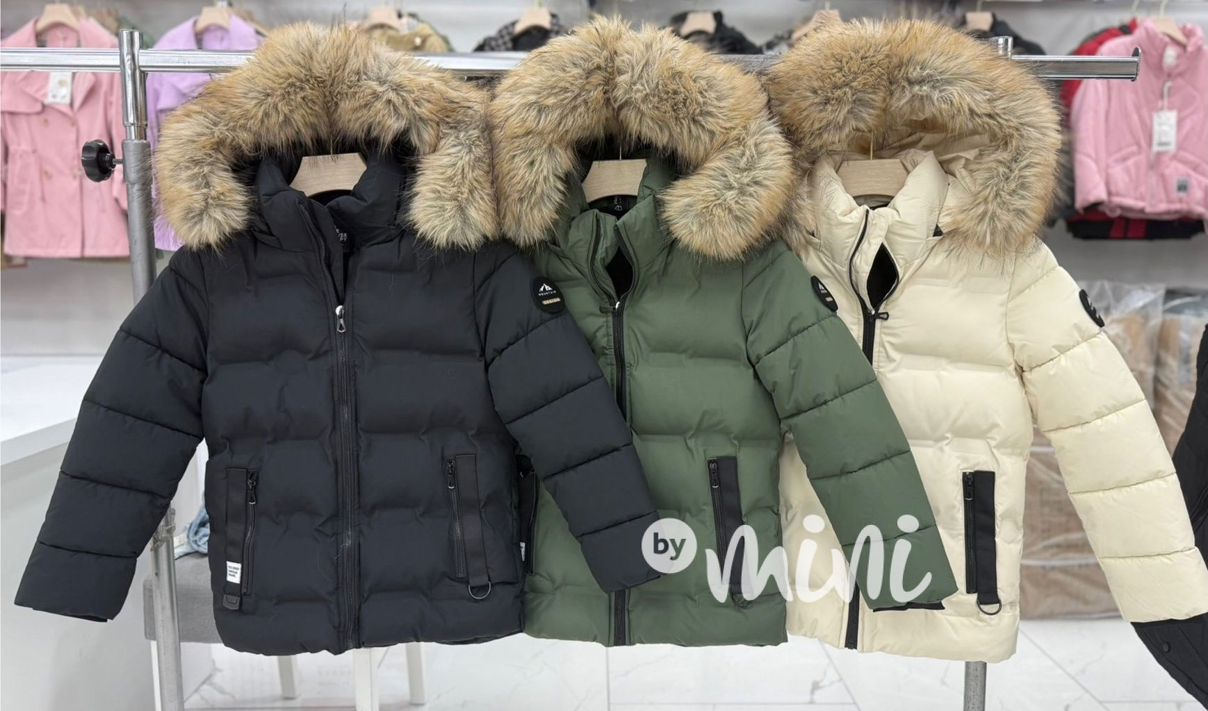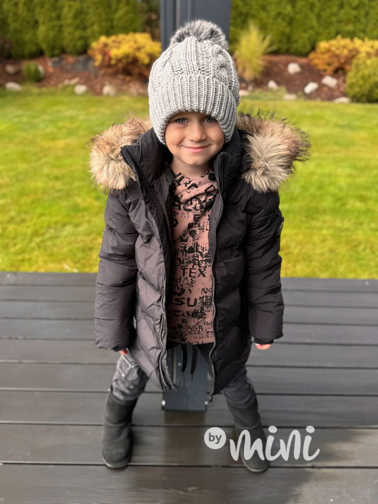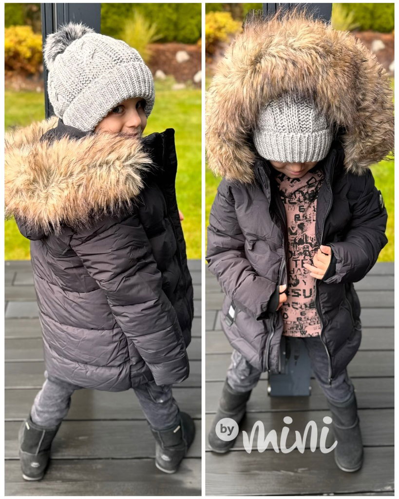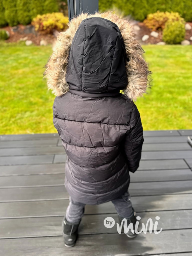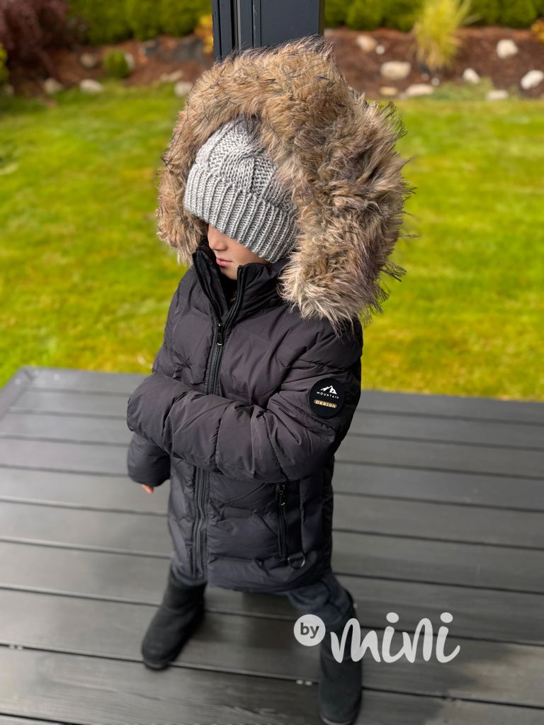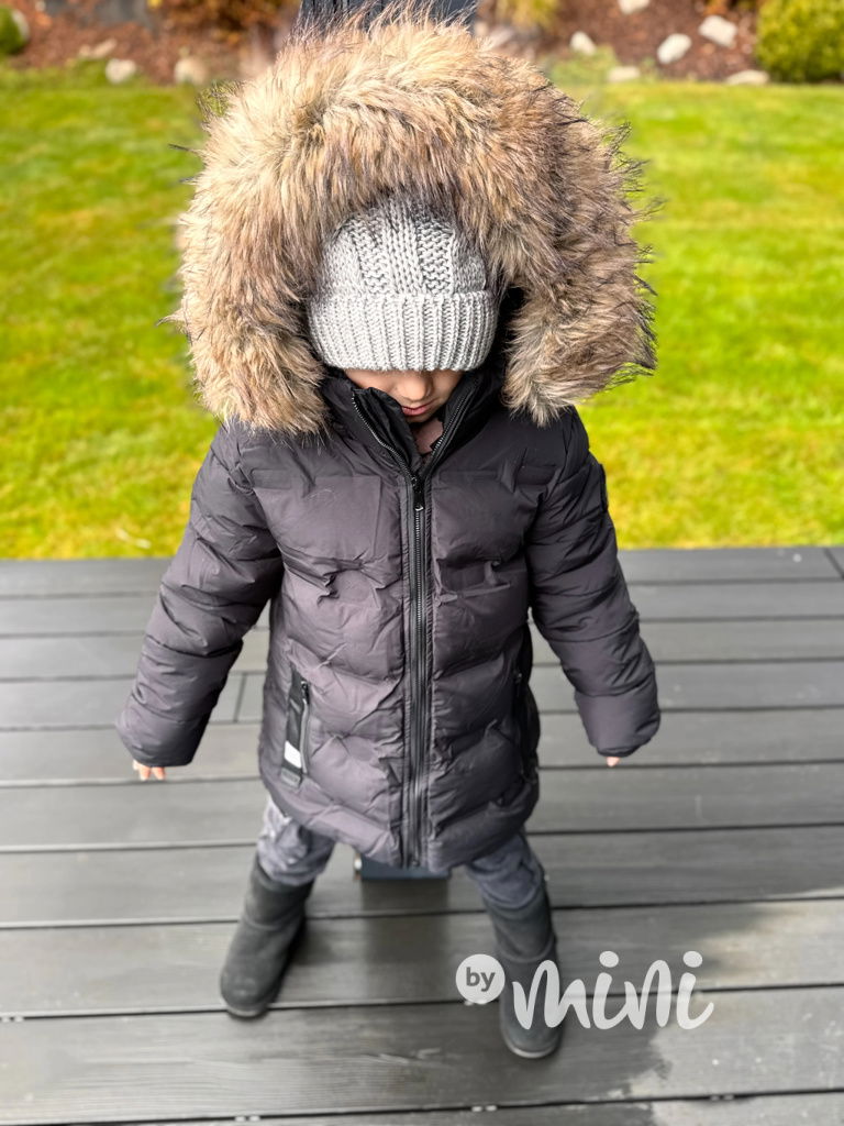 Krásná zimní chlapecká bunda se stylovými detaily, kapsy, kapuce odnímatelná, kožíšek samostatně lze také odepnout.