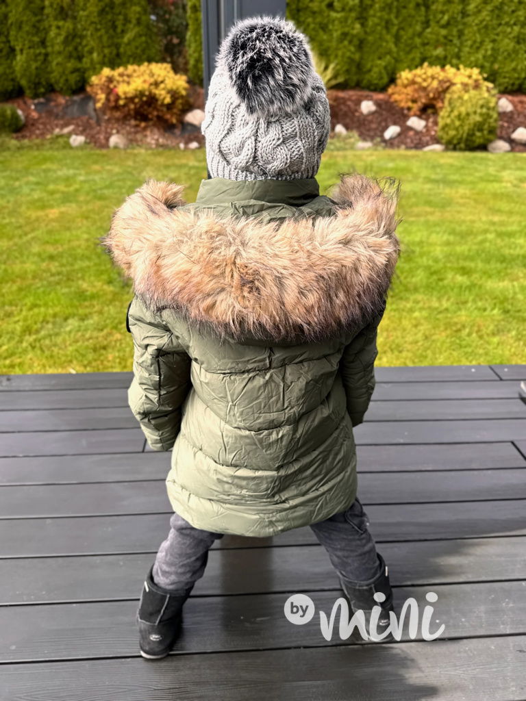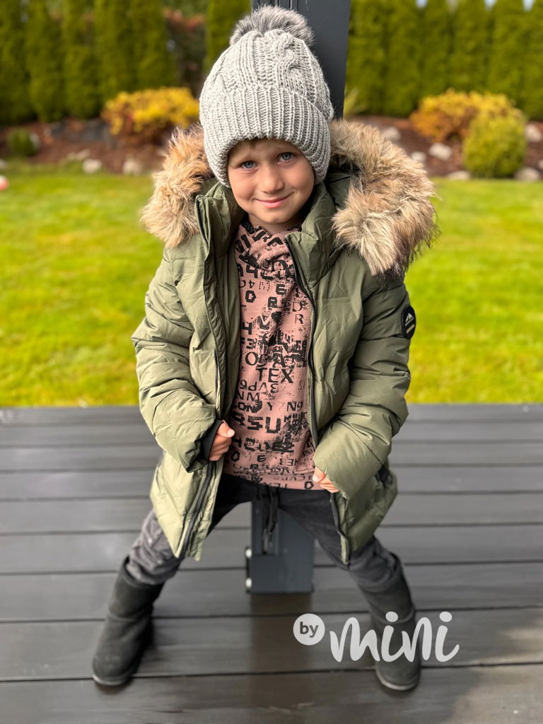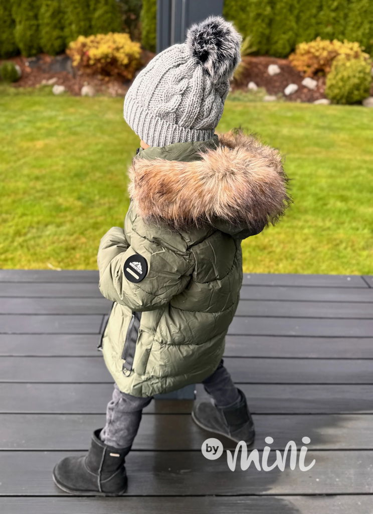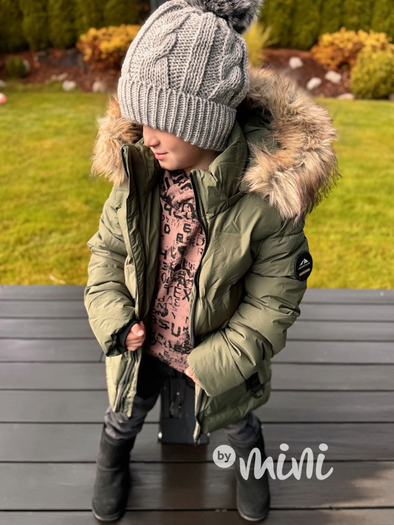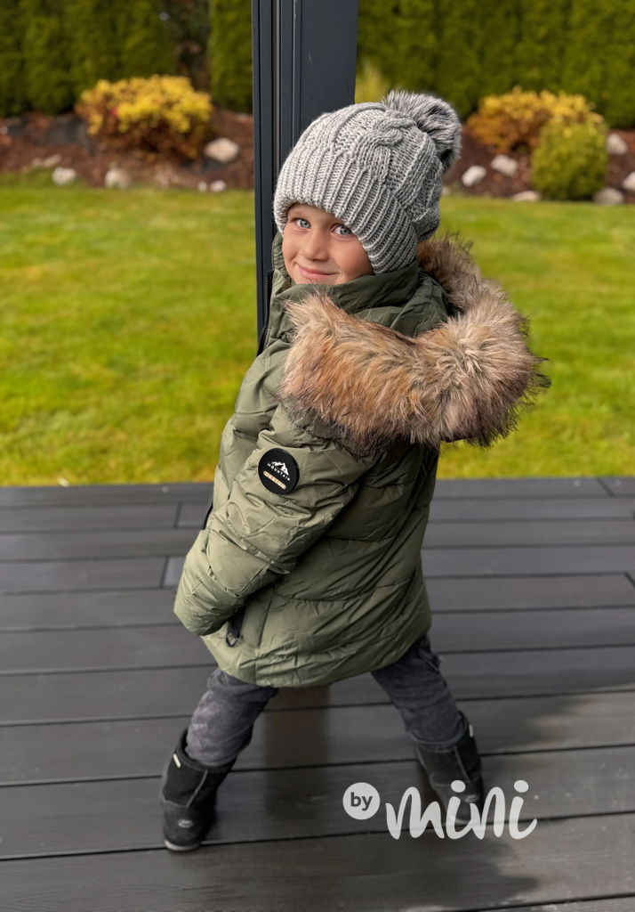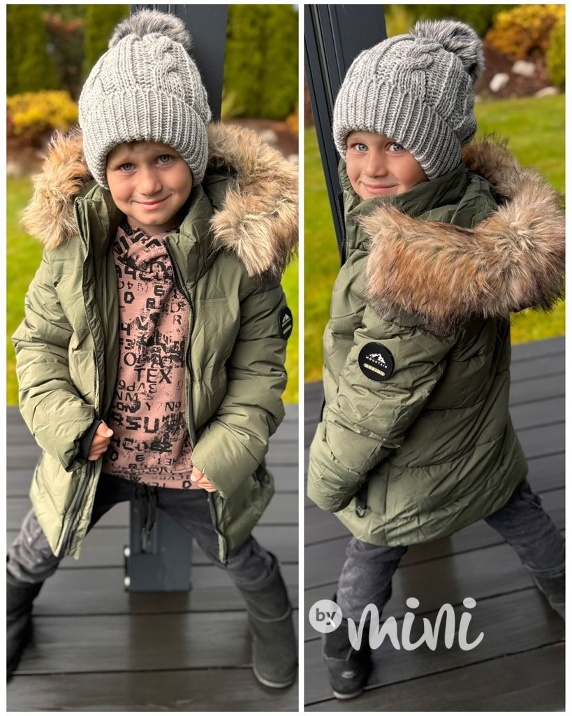 Krásná zimní chlapecká bunda se stylovými detaily, kapsy, kapuce odnímatelná, kožíšek samostatně lze také odepnout.