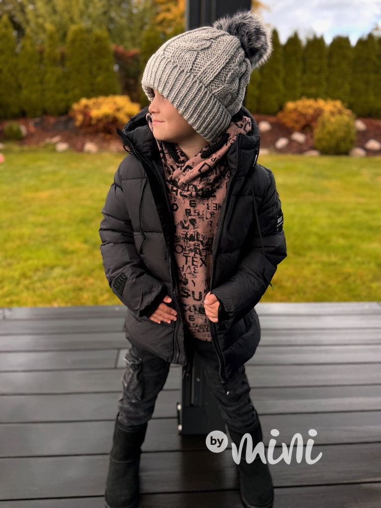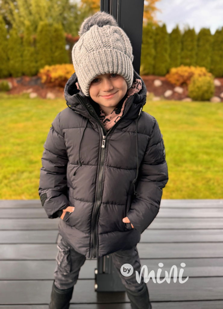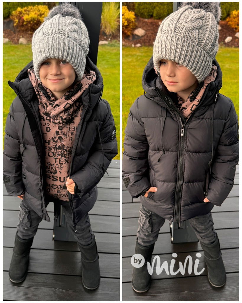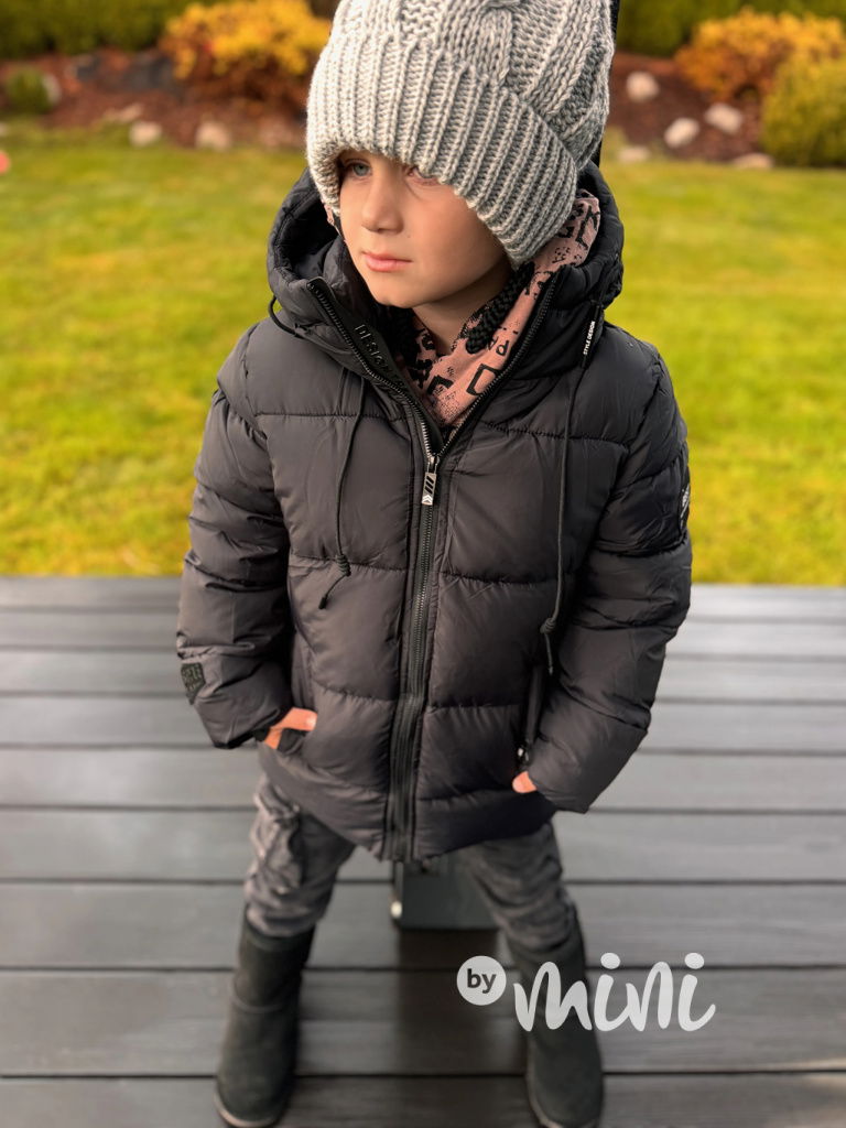 Krásná zimní chlapecká bunda se stylovými detaily.