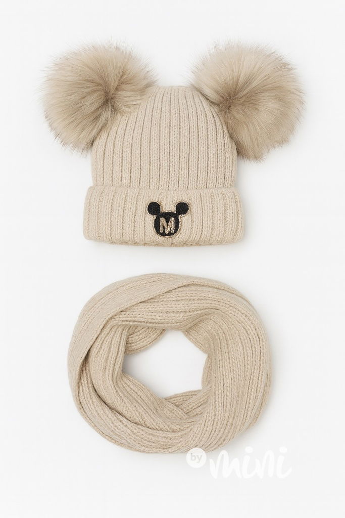 Zimní kulíšek s dvěmi bambulkami + teplý maxi nákrčník na obtočení.