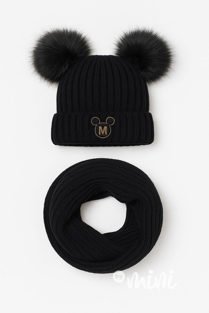Zimní kulíšek s dvěmi bambulkami + teplý maxi nákrčník na obtočení.